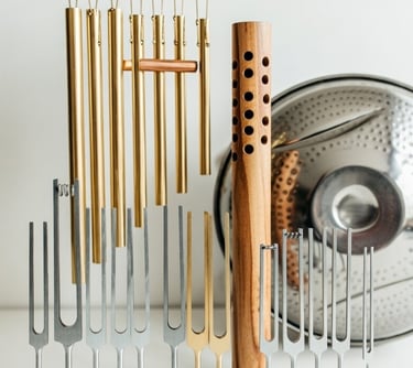 Precise, calibrated metal forks (often planetary or chakra-tuned) that deliver focused, pure sine-wave vibrations.